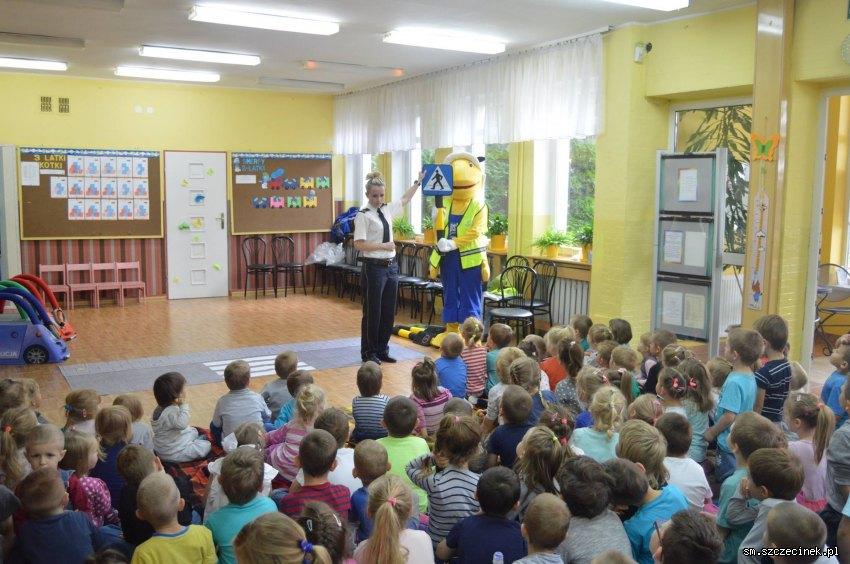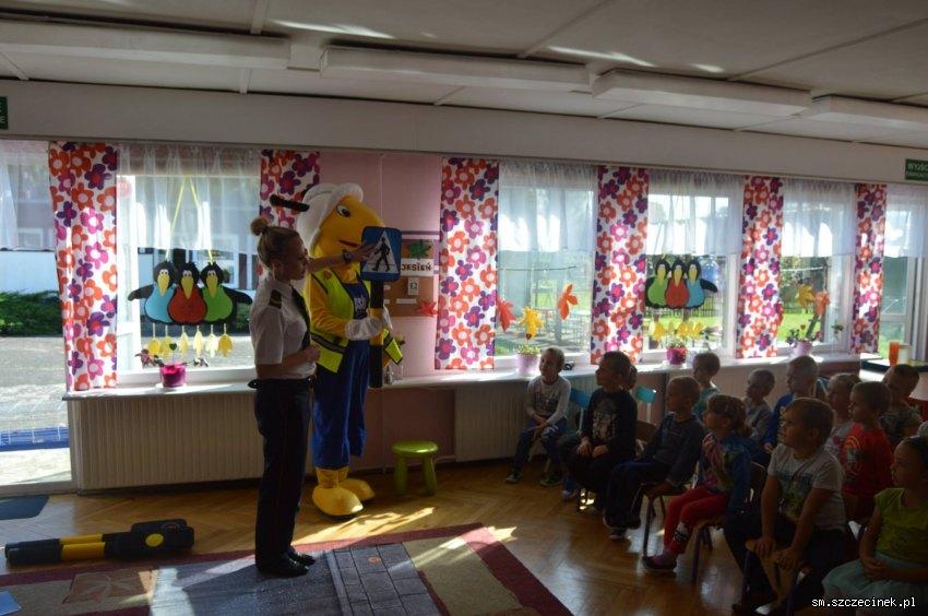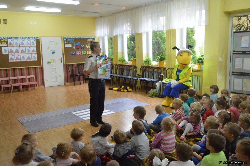 Rozpoczęliśmy cykl pogadanek w przedszkolach i szkołach, specjalistka Paulina Peciak- Nazarewska prowadzi zajęcia na temat bezpieczeństwa na drodze, strażniczka w formie zabawy uczy prawidłowych zachowań na drodze. Zjęcia prowadzone są z wykorzystaniem miasteczka ruchu drogowego, maluchy mogą zapoznać się z przejściem dla pieszych, sygnalizatorem świetlnym, ich znaczeniem w ruchu drogowym. "Chodziki samochodowe" służą do nauki poruszania się po drodze w zapiętych pasach bezpieczeństwa. Ponadto dzieci poznają numery alarmowe i jak postępować w sytuacji zagrożeń. Najmłodsi poznają jakie zagrożenia mogą ich spotkać na podwórku i jak reagować w przypadku spotkania z obca osobą, czy też w kontakcie ze zwierzęciem. W trakcie spotkań wręczane są dzieciom elementy odblaskowe.