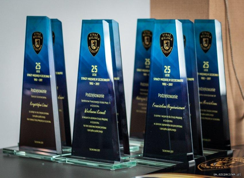 W trakcie uroczystości wręczono również pamiątkowe statuetki z podziękowaniami od straży miejskiej dla osób z różnych instytucji za pomoc i wsparcie w zakresie zapewnienia bezpieczeństwa i porządku publicznego.