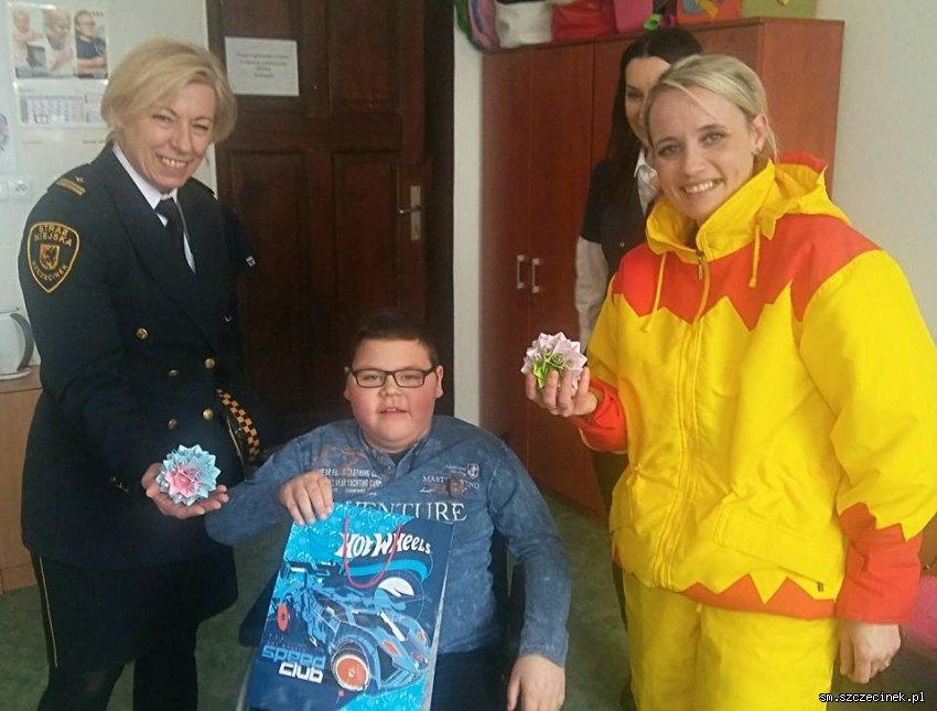 Straż Miejska w Szczecinku gościła w Placówce terapeutycznej Jaś i Małgosia gdzie spotkała się z dziećmi z okazji Świąt Wielkanocnych. Dzięki zorganizowanej zbiórce wręczane były prezenty na zajączka które udało się zebrać dzięki hojności darczyńców min. Pani Kamili Markowskiej, Katarzynie Ciężkiej ze sklepu Miś, Renacie Kania-Rempel, Marii Sawicz, Roksanie Koczan, Monice Piskorskiej, Ewelinie Antkiewicz, Annie Tutaj, Edycie Kot, Anicie Szadzińskiej, Magdalenie Dowgielewicz, Żanecie Czaja, Agnieszce Matias, Danucie Kadeli. Cieszymy się że zawsze możemy liczyć na pomoc w organizacji wielu zbiórek. Zamiast świątecznego zajączka był kurczaczek, który wywołał radość w sercu dzieci.