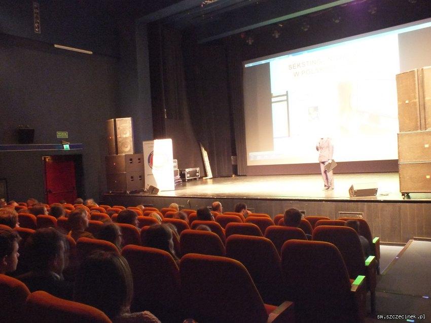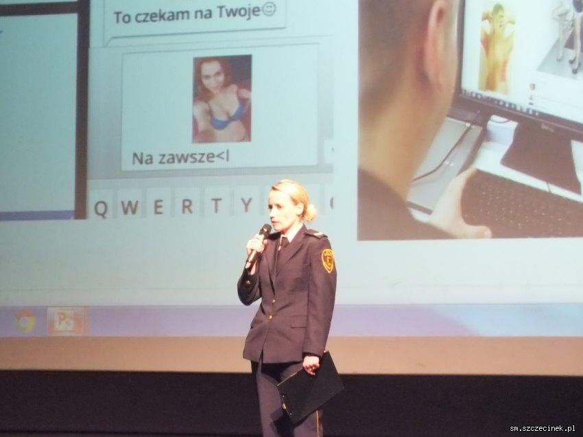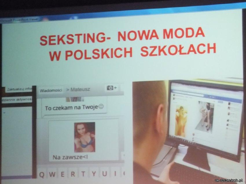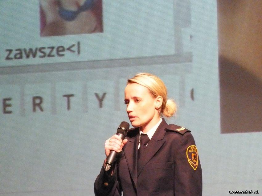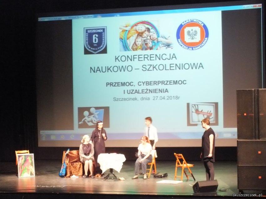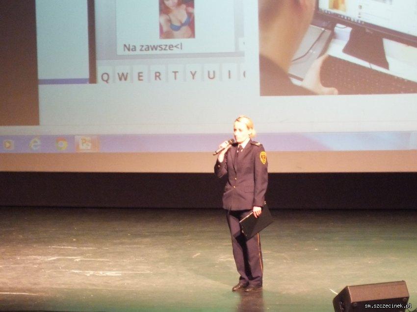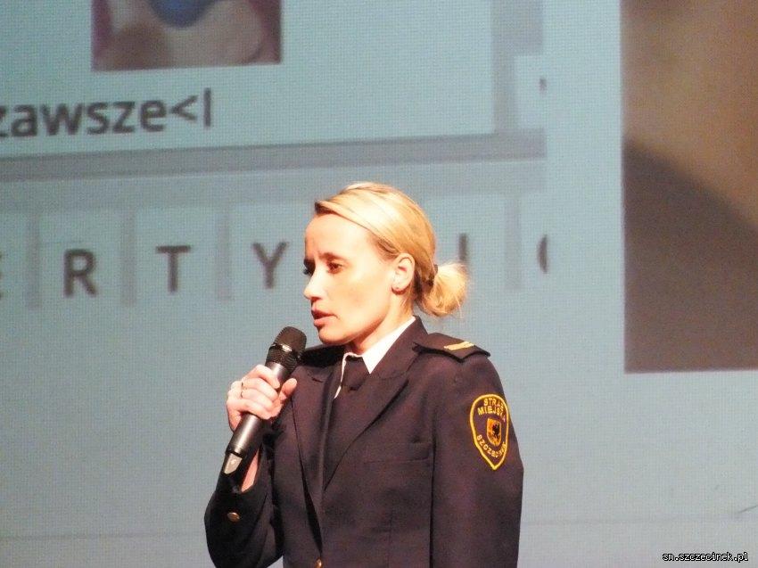 W dniu 27.04. w sali widowiskowej Kina Wolność odbyła się Konferencja Naukowo-Szkoleniowa pod hasłem "Przemoc, cyberprzemoc i uzależnienia", która była skierowana do uczniów klas VII szczecineckich szkół podstawowych oraz powiatowych. Podczas tej konferencji Spec. Paulina Peciak-Nazarewska przeprowadziła wykład na temat zjawiska Sekstingu, czyli tworzenia, przesyłania czy odbierania zdjęć i filmów o charakterze seksualnym z wykorzystaniem nowej technologii np. Internetu, telefonów komórkowych, aplikacji internetowych, videoczatorów. Badania przeprowadzone przez FDN pokazały, że aż 1/3 nastolatków otrzymuje materiały sekstingowe, a 11% czyli co 9- ty młody człowiek sam takie zdjęcia czy filmy wysyła. Strażniczka powiedziała o konsekwencjach z jakimi trzeba się liczyć, kiedy wysyła się taki materiał, ale również o formach pomocy.