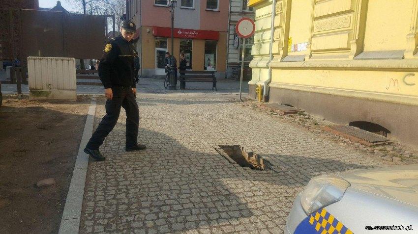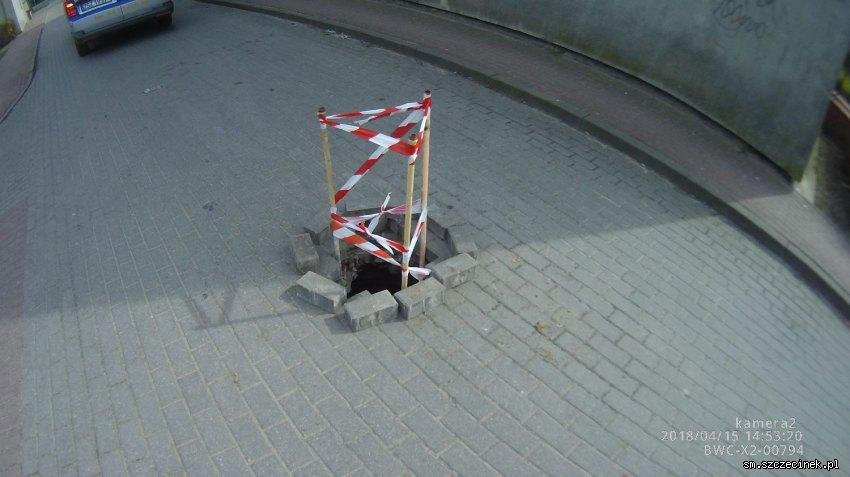 15.04.2018 r. o godzinie 12:55 patrol SM udał się na ulicę Mierosławskiego, gdzie wpłynęło zgłoszenie o zapadającej się nawierzchni jezdni. Ponieważ miejsce to stanowiło realne zagrożenie dla ruchu strażnicy zabezpieczyli to miejsce do czasu przybycia służb technicznych SzSM.