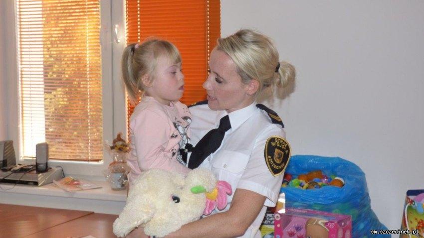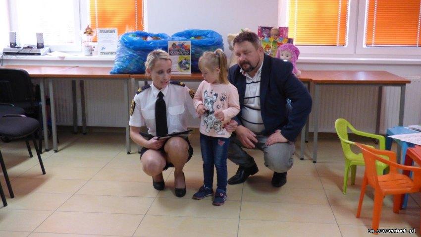 Oprócz pół tony kolorowych nakrętek mieszczących się w czterdziestu wypełnionych po brzegi workach, dziewczynka otrzymała także od Straży Miejskiej w Szczecinku prezenty w postaci zabawek. To także stało się nieodzownym elementem każdej z wizyt małej Kingi w naszej siedzibie.