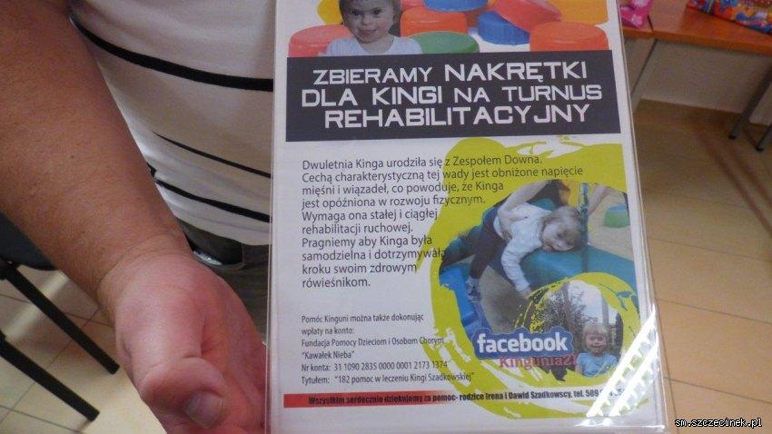 W czwartek, 18 października odbyła się już siódma odsłona akcji na rzecz dziewczynki z zespołem Downa, zorganizowana przez Straż Miejską. Główną organizatorką była strażniczka Paulina Peciak-Nazarewska która zorganizowała zbiórkę kolorowych plastikowych nakrętek na rzecz 4-letniej Kingi Szadkowskiej. Włączyli się do niej także podopieczni licznych placówek oświatowych, w tym także szczecineckich przedszkoli i szkół, a także mieszkańcy, którzy przez ostatnie miesiące niemal codziennie odwiedzali komendę, pozostawiając pakunki z kolorowymi nakrętkami.