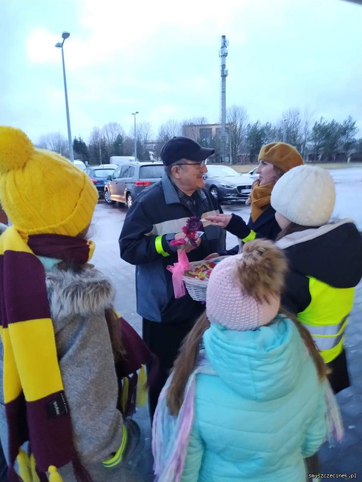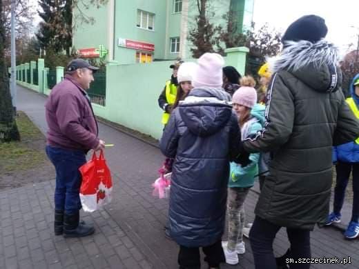 Nie bez powodu wyruszyliśmy już w godzinach rannych, ponieważ jeszcze było szaro i ciemno. Taka pora dnia w połączeniu z deszczem czy mgłą powoduje, że piesi nie są w ogóle widoczni. Poza życzeniami była okazja, by przypominać seniorom jak należy zachowywać się przy przejściu dla pieszych i jak ważne są elementy odblaskowe.Spotykaliśmy się z dużym entuzjazmem i zadowoleniem, seniorzy dziękowali za przeprowadzoną akcję. Dziękujemy PSB Mrówka Szczecinek, która zawsze nas wspiera w działaniach.