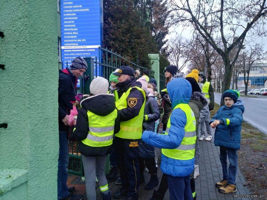 Z okazji Dnia Babci i Dnia Dziadka Straż Miejska w Szczecinku wraz z uczniami Szkoły Podstawowej nr 7 i z Panią wychowawczynią wyruszyła w miasto by wręczać seniorom elementy odblaskowe oraz słodkości.