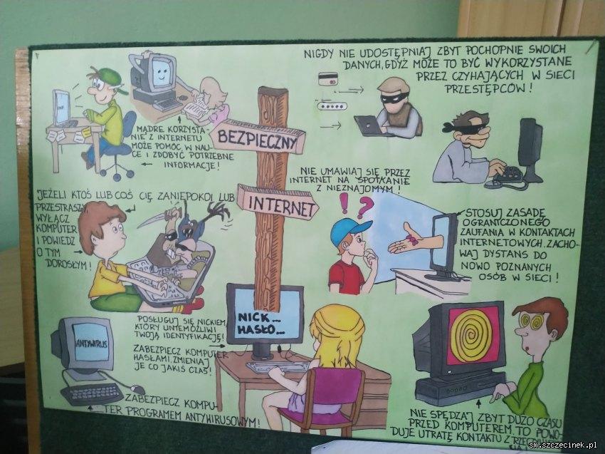 Internet to symbol najnowocześniejszej technologii goszczącej w mieszkaniach milionów właścicieli komputerów. Ta ogromna sieć niesie za sobą wiele korzyści, ale i zagrożeń. 11 lutego obchodziliśmy Dzień Bezpiecznego Internetu, w związku z tym w Szkole Podstawowej nr 1 wraz z nauczycielem, Panią Małgorzatą Marciniak zorganizowaliśmy konkurs plastyczny pod hasłem „Bezpieczny internet". W dniu wczorajszym nagrodziliśmy najbardziej interesujące prace. Za poświęcony czas, zaangażowanie, uczestnictwo, a także bardzo wartościowe przesłania, bardzo dziękujemy.