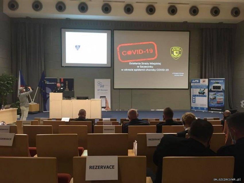 W dniach 16-18 września w Ołomuńcu odbyła się V Międzynarodowa Konferencja Policji Komunalnych. W konferencji uczestniczyli przedstawiciele policji miejskich z Czech, Słowacji oraz straży miejskich z Polski. Oprócz przedstawicieli policji i straży miejskich na konferencji w Ołomuńcu wystąpili przedstawiciele zintegrowanego systemu ratownictwa, służb bezpieczeństwa i samorządów. W ciągu dwóch dni konferencji podzielonej na panele tematyczne, funkcjonariusze wymienili się między innymi swoimi doświadczeniami oraz działaniami w trakcie trwania pandemii COVID-19. Oprócz działań związanych z rozprzestrzenianiem się koronawirusa, tematami poruszanymi w ciągu dwudniowej konferencji były: bezpieczna przestrzeń, technologia, profilaktyka i prawodawstwo. Organizatorom udało się zorganizować konferencję policji miejskich dzięki przygotowaniu specjalnych środków higieny dla organizatorów i uczestników. Komendant straży miejskiej w Szczecinku w swoim wystąpieniu przedstawił działania straży miejskiej w Szczecinku w trakcie trwania choroby COVID-19. Nawiązał również do błędów legislacyjnych wprowadzonych przepisów prawa, oraz skutków niewprowadzenia jednego ze stanów nadzwyczajnych. Komendant z Częstochowy przedstawił sytuację straży gminnych, miejskich w Polsce, Zastępca Komendanta z Gliwic mówił o wpływie COVID-19 na nabory w strażach miejskich. Koledzy z Cieszyna mówili o nowych metodach znakowania rowerów. Natomiast od Komendanta z Krakowa uczestnicy mogli się dowiedzieć o usuwaniu wraków. Po konferencji przedstawiciele straży miejskich zostali zaproszeni do siedziby Miejskiej Policji w Ołomuńcu, odpowiednika naszej straży miejskiej. Dyrektor jednostki, jak nazywany jest tu komendant, oprowadził funkcjonariuszy po pomieszczeniach budynku i pokazał pracę swojej jednostki. W trakcie spotkania było wiele pytań związanych ze specyfiką pracy funkcjonariuszy z Ołomuńca. Na koniec zaprosiliśmy naszych kolegów strażników z Czech do Polski oraz odwiedzenia Szczecinka.