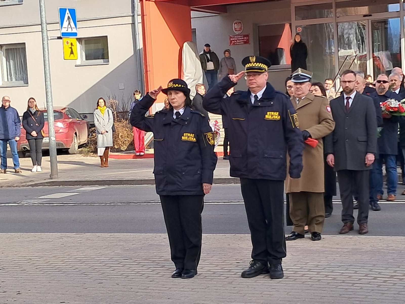 W imieniu Straży Miejskiej hołd uczestnikom podziemia niepodległościowego złożyli: Zastępca Komendanta, Kierownik Referatu Monitoringu Miejskiego. Wspólnie złożyli oni wiązankę kwiatów w miejscu pamięci, oddając cześć tym, którzy po II wojnie światowej z odwagą i poświęceniem walczyli o pełną suwerenność Polski.